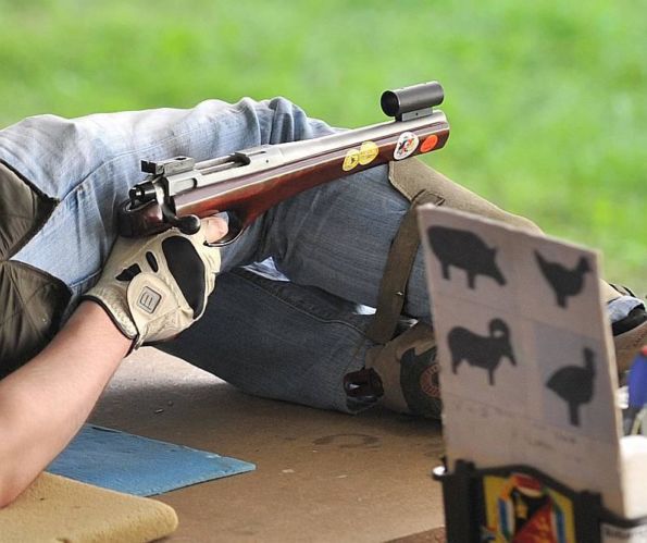Smallbore matches require the use of rimfire handguns to knock down chickens at 25m, pigs at 50m, turkeys at 75m and rams at 100m. You might expect that because the range distances are halved that the targets would also be half-sized – not so. The targets are scaled down to three-eighths of full size, which makes this match more difficult to shoot compared to the full-sized Big Bore match. There is also a 50m Rimfire match, using one-fifth-scale targets, which is popular with clubs having restricted ranges.
